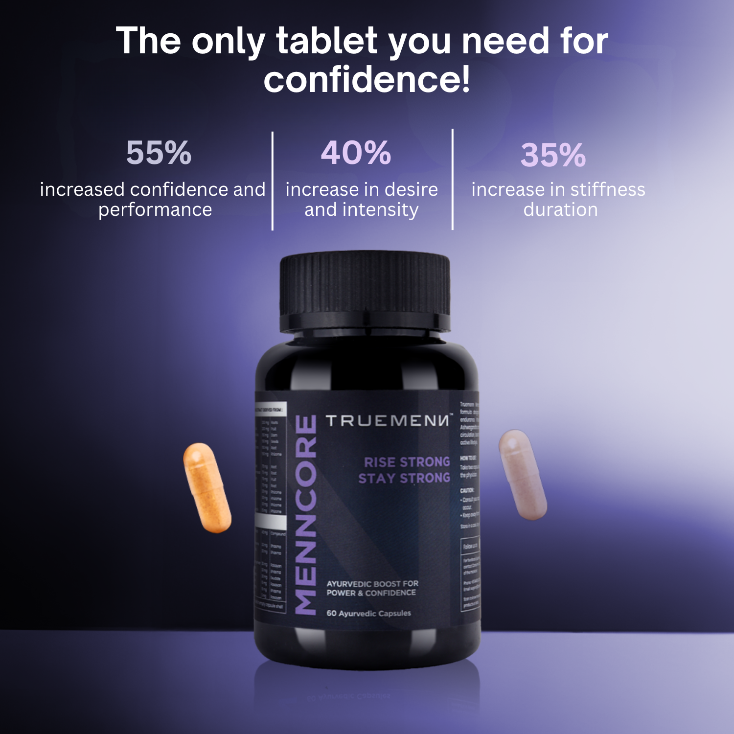 Truemenn MENNCORE is Made for modern men who value strength and confidence it's revitalising Ayurvedic formula designed to support healthy blood circulation, Increase the sperm count, Helps get hard naturally, stay longer on the bed, boost vitality through holistic mind-body support.
